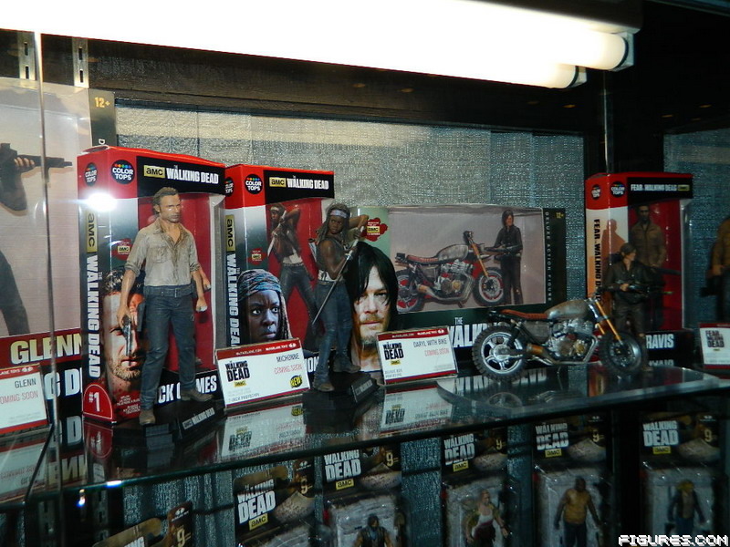 We can’t get enough zombies, and McFarlane Toys satisfies our need for gore with great products celebrating both the comic book and TV universes of The Walking Dead. At New York Toy Fair 2016 the toy maverick showed off a slew of new and upcoming toys across various lines, and we’ve got the photos to prove it! Rick and Michonne will be among the headliners in the new 7 inch line of figures in the Color Tops Collector Series (featuring top notch sculpts, about 14 points of articulation serving the pose and look, and a display base in a collector friendly color-coded box for around $17), and Travis joins them as the debut Fear the Walking Dead figure.