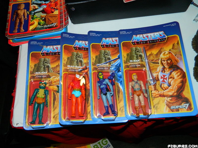 Every so often at a big show like New York Toy Fair you catch something that seems too cool to be true, and this may just be. While perusing the unique Killer Instinct figures at the Ultimate Source booth we noticed a side table of Super7 figures and cards for possible upcoming products... and they were pretty awesome. On display were the “Power of Grayscale” Masters of the Universe 3 ¾ inch figures from New York Comic Con alongside currently unreleased full-color versions and M.O.T.U.S.C.L.E. mini figures. But that’s not all...