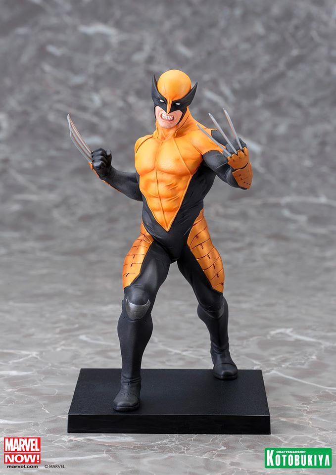 Sculpted by the same master artist who did the Marvel Now! Avengers series, Junnosuke Abe, the diminutive Wolverine stands under 7 ½ inches tall (in the ARTFX+ 1/10th scale) with magnets in his feet to provide perfect stability on his included display base. Look for the Marvel Now! Wolverine ARTFX+ Statue this September.