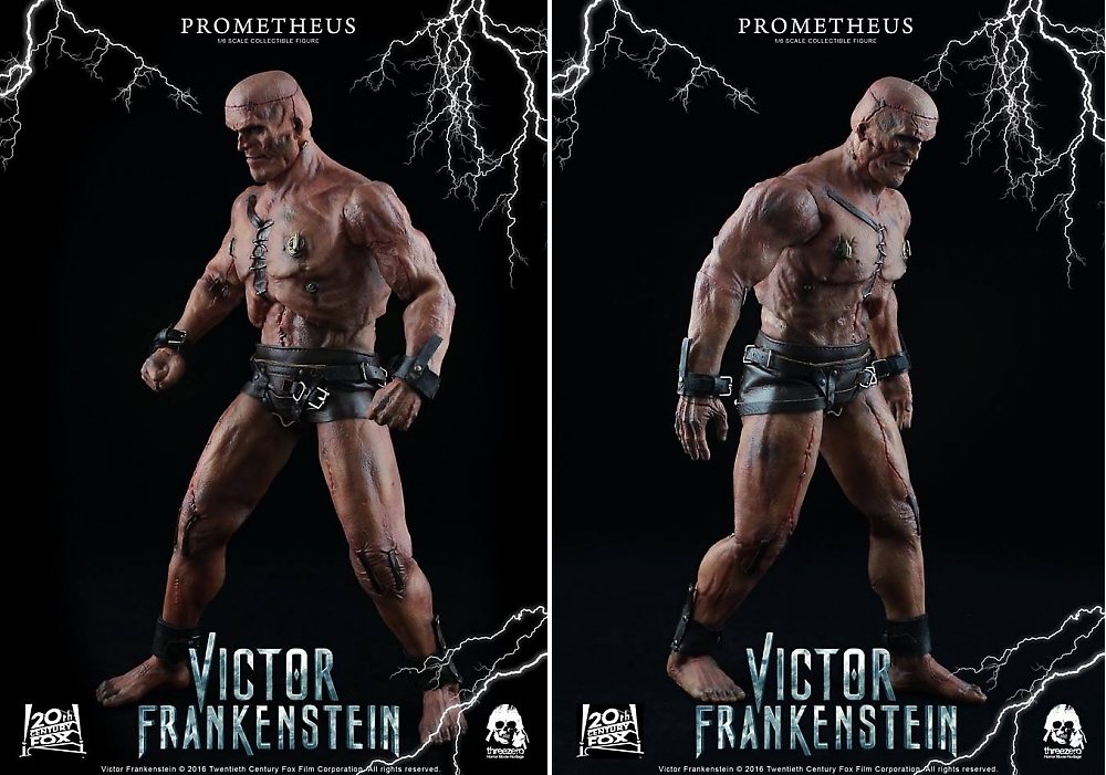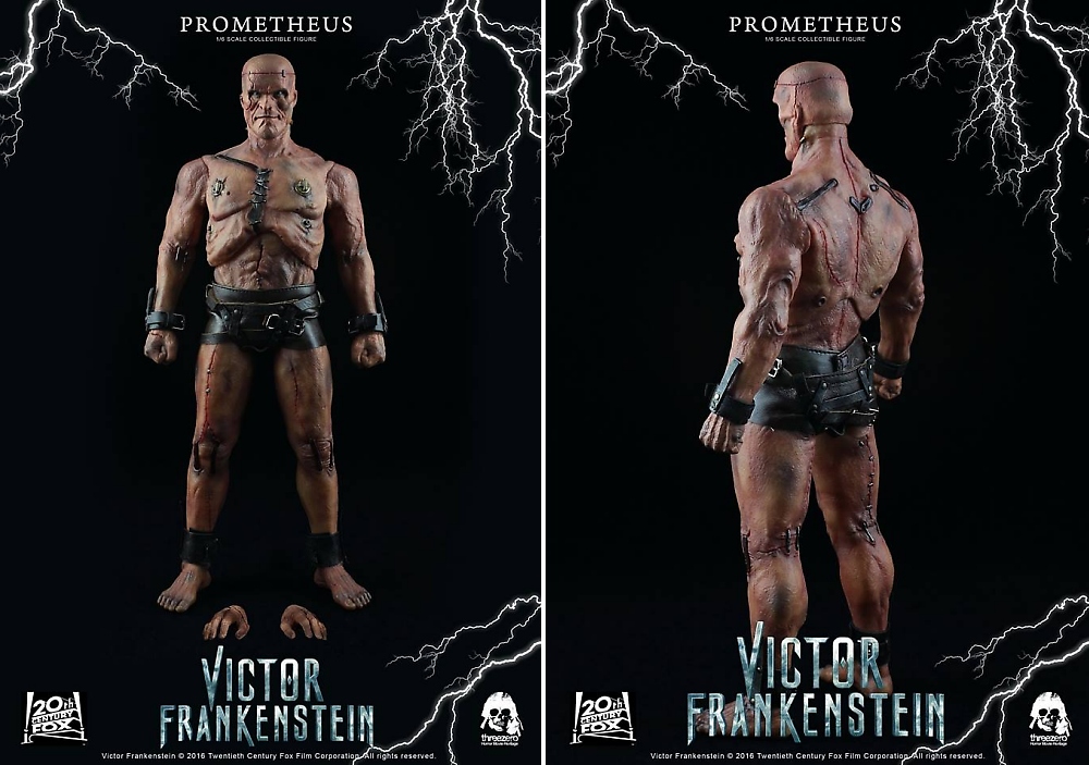 As announced earlier this week, a 1:6th scale Prometheus collectible figure from Victor Frankenstein movie continues ThreeZero's Horror Movie Heritage series. It will be available for pre-order at threezerostore.com starting from April 14th 9:00AM Hong Kong time for $198 (HKD 1540) with Worldwide Shipping included in the price.
