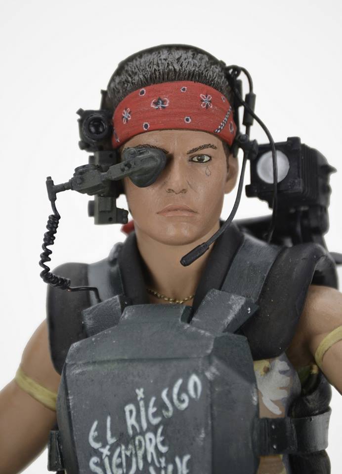 Private Jenette Vasquez features the likeness of Jenette Goldstein. Her Marine gear is completely faithful to the movie, from the hand-painted mottos to the detailed headgear and shoulder lamp. Vasquez has over 30 points of articulation and comes with a smartgun with fully articulated harness, plus a blast effect that attaches to the muzzle.