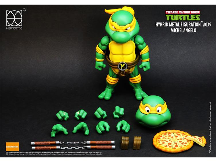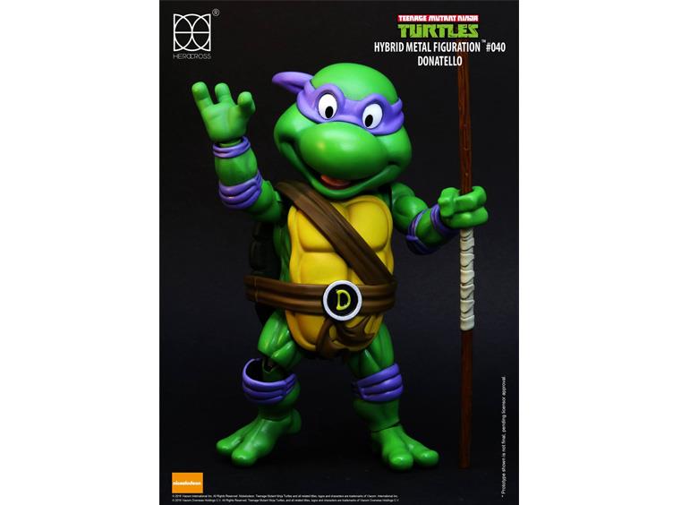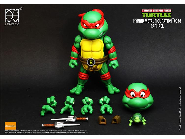 Herocross presents the Teenage Mutant Ninja Turtles as Hybrid Metal Figuration figures. Leonardo, Raphael, Michelangelo, and Donatello each feature a fully poseable hybrid metal body with over 20 points of articulation; giving the figures great mobility to recreate all of their classic ninja poses! They come with interchangeable hands, alternate playful heads and a variety of extra unique accessories.