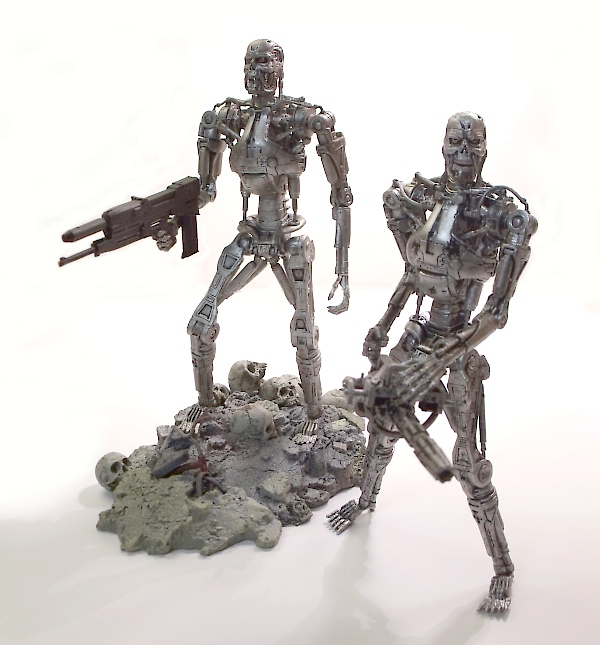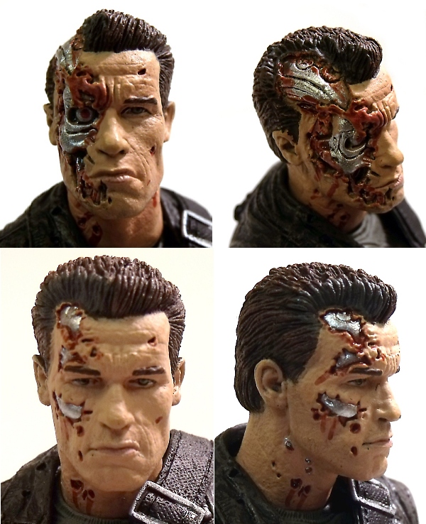 Deciding on which head to put on my figure was HARD, but I ultimately went with the been-through-hell-and-back sculpt. The figure's composition this way flows fantastically; one's eye is drawn from the steel skull poking through half his face, past the huge hole in his chest, over to the savagely ripped off left arm, and down to his exposed Endoskeleton knee cap.