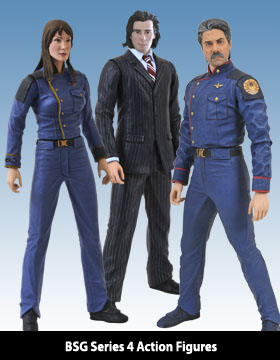 The long-awaited fourth assortment of Battlestar Galactica action figures is finally heading to comic and specialty stores with a new configuration combining the best of the original assortment with a new oft-requested addition.