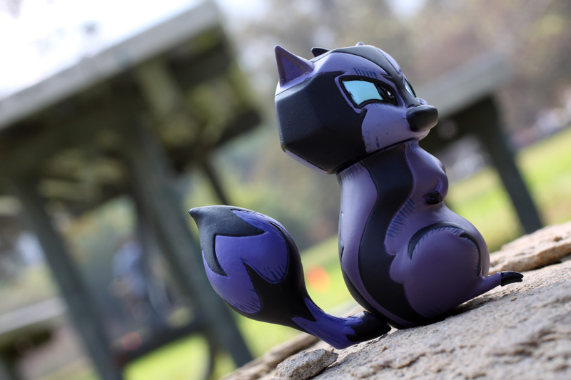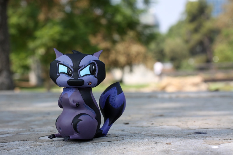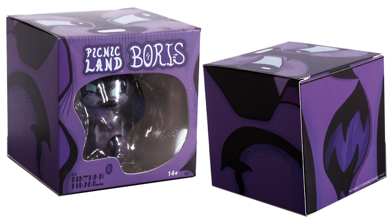 Boris needs a good home and he's just been made available for purchase through U1 Toy Arts. Created under the Picnic Land banner by artist Nathan Hamill, the purple raccoon who has a hankering for acorn cookies and sardine tea was originally just a regular illustration. Now with the help of sculptor Dave Kawano, U1 Toy Arts and the distribution of DKE Toys, Boris is a 2 ½ inch rotocast vinyl figure that has a lot of spunk and personality, even in such a small size.