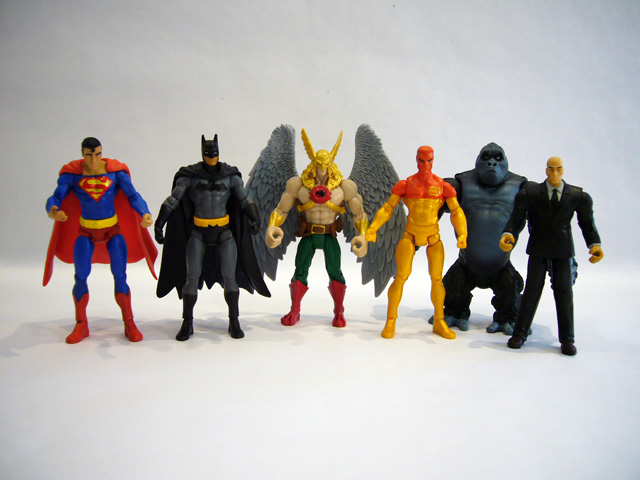 The latest of the direct to DVD animation features by Warner Brothers and DC Comics is Superman/Batman: Public Enemies. It’s been on shelves for less than a month (released on September 29), and just in time for fans to celebrate the famous storyline appearing in this new media Mattel is releasing exclusive toys! Building off of the current DC Universe lines, the Superman/Batman figures on shelves now come in two varieties, Classics and Infinite Heroes. Today we’ll be taking a look at the main Infinite Heroes set, the Superman/Batman: Public Enemies 6-Pack containing Superman, Batman, Hawkman, Major Force, Gorilla Grodd, and President Luthor.