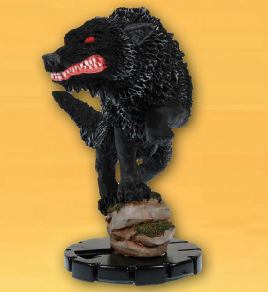 The Fenris Wolf appears in Marvel comics just as he does in Norse mythology, a fearsome giant wolf bent on the destruction of the Asgard. Plaguing them from time to time, Fenris is most notable for his role in Ragnarok: swallowing the very sun and moon of Asgard! How would such a monster translate into HeroClix? As a huge (Giant) snarling black wolf perched on a rocky base. He looks vicious enough to take off a finger or two, and the detail on his furry sculpt is quite impressive. Best of all, he’s massive like a Giant should be!