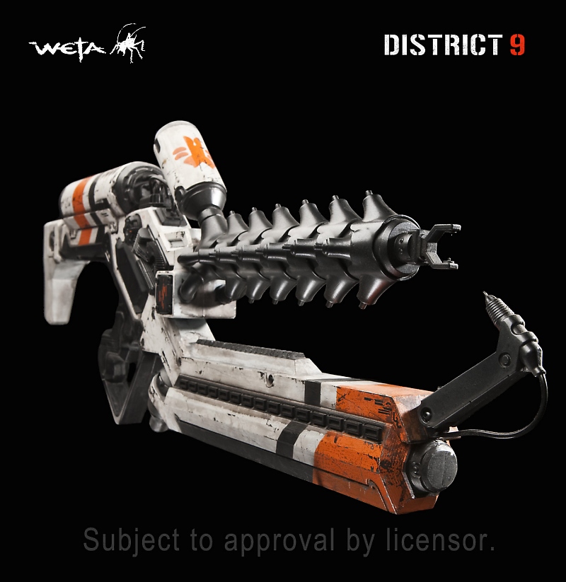 As previously reported, WETA Workshop had announced that they will be producing collectibles from the hit sci-fi movie District 9. WETA, which designed the original props for the film, reveals today their first two collectible offerings. These include two powerful prawn weapons: the ARC GENERATOR (pictured above) and the GAS PROJECTOR (below).