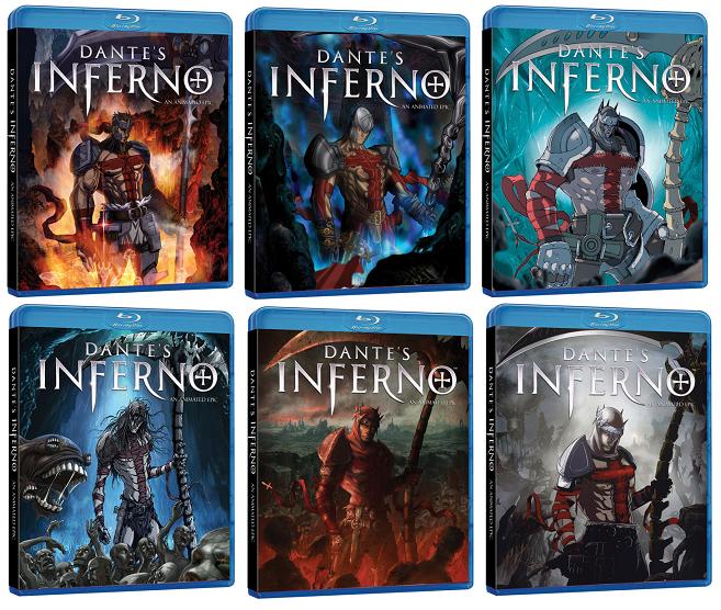 Highlighting the feature’s unique artistic signature, the Dante’s Inferno: An Animated Epic DVD and Blu-ray™ boasts six limited edition customized covers (above) specially created by the six participating animation studios.